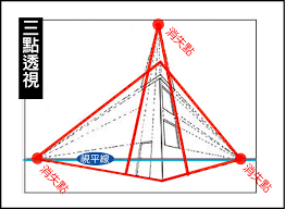 而消失點透視法又有:一點透視、二點透視、三點透視等