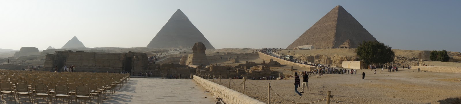 埃及:人面獅身像 + 三顆金字塔(左下角是晚上看燈光秀的地方)
