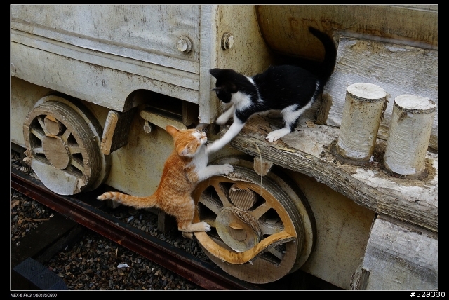 新手只會淺景深,也來蓋一下磚。前不久去侯硐拍的~這隻本來就是黑白,所以乾脆用黑白色調~悠哉喵喵喵...真好吃~狗狗跑來搶食~不爽對嗆~嗆聲沒用,出手攻擊~~打完還不走繼續瞪~~真舒服~直接睡在商品上當活廣告~對張貓失焦了,但跟旁邊的>_< 相呼應~~還要吃好BLUE~~探索~新發現~~