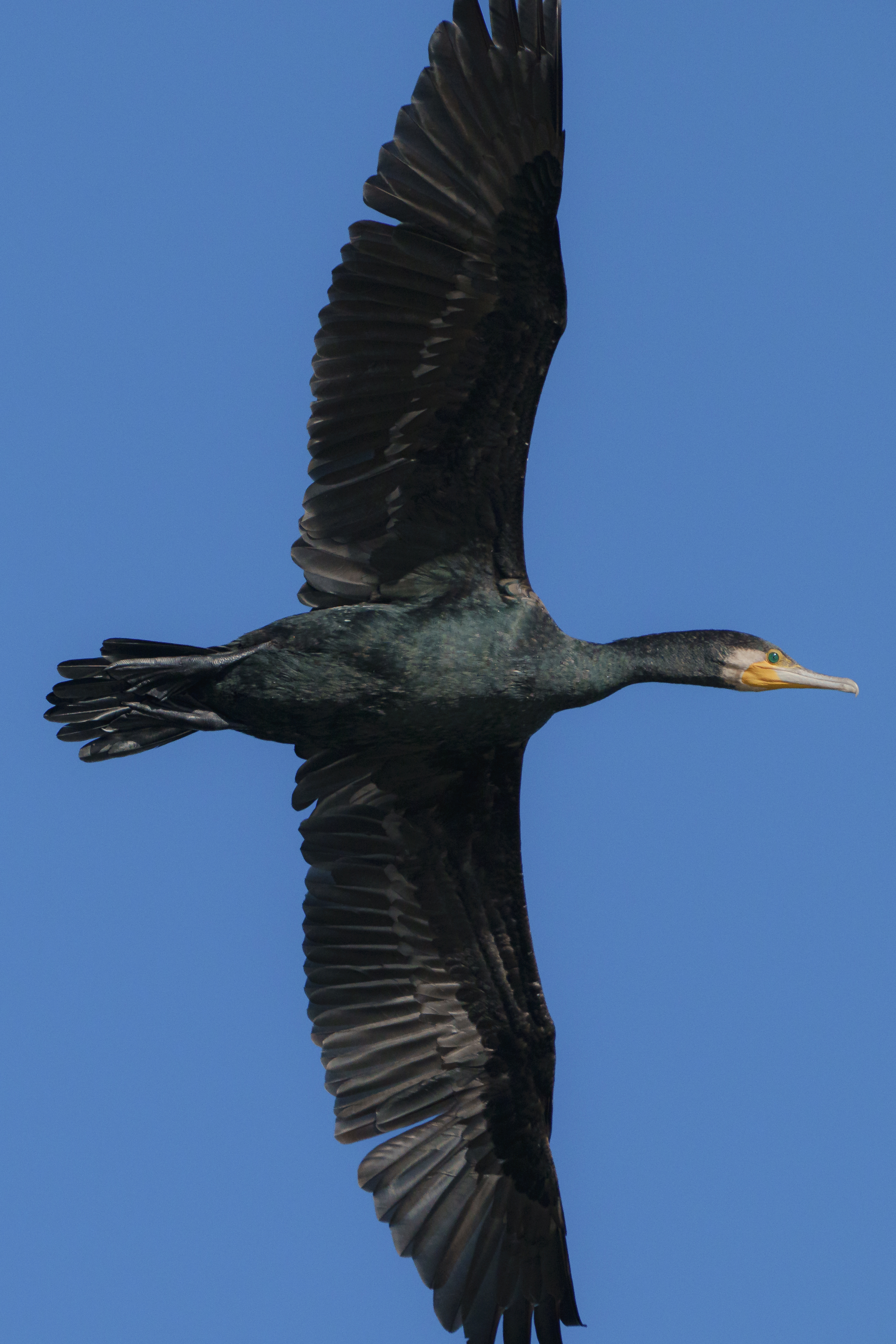 繼續練...灣潭也有的「魯粗」(鸕鶿)Sony α1 & SEL400GM+SEL20TC @ ISO1000、F8、1/4000S針對那麼的黑,而又在空中有高反差的,打過多次的結果,要用上高ISO,才會較有紋理圓滿的出現!
