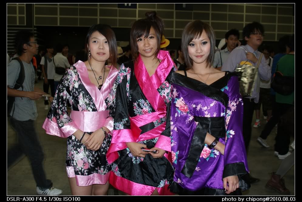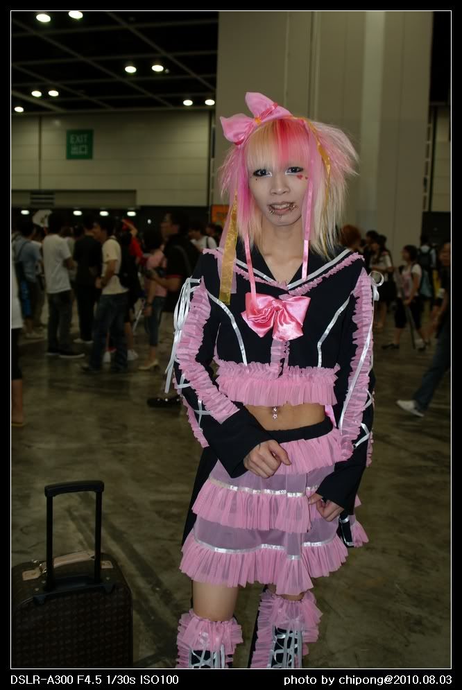 台灣的COSPLAY會場都很不錯啊,在室外光線和背景都比較好~~~相反香港的大型COSPLAY活動多數在室內,而且COSPLAY的樣子與造型都不及台灣!上一年的遊戲展,小弟在同一個場地拿上50 1.4,得到了慘痛經歷,近乎都是半身照片,而且在室內這麼多人的情況下,根本無退路可拍全身。小弟不材,也來分享一下在幾天前在香港動漫節拍的COSPLAY~~用A300+M24-85拍的~~忘記帶外閃,所以普遍不夠光~~~