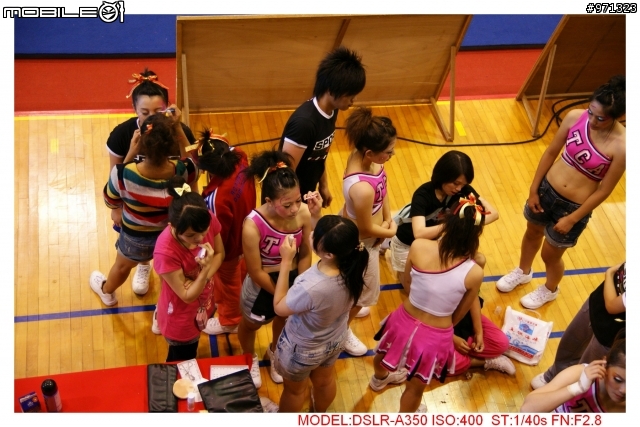 Lukyman wrote:小弟也忍不住A16的...(恕刪) 哀~小弟禮拜天使用的時候發現A16有個嚴重的缺點~害我拍的很心虛那就是......焦斷不夠不要打我哈哈不過顏色還是令我讚賞看來接下來應該先買A18繼續我的三A之路以下供大家繼續中毒~全國大專啦啦隊競賽~大家都在做最後準備練習進場致命傷就是~焦段不足所以都取不到好景因為被隔離了~只能在上面拍所以立志要買A18了我喜歡捕捉幕後花絮