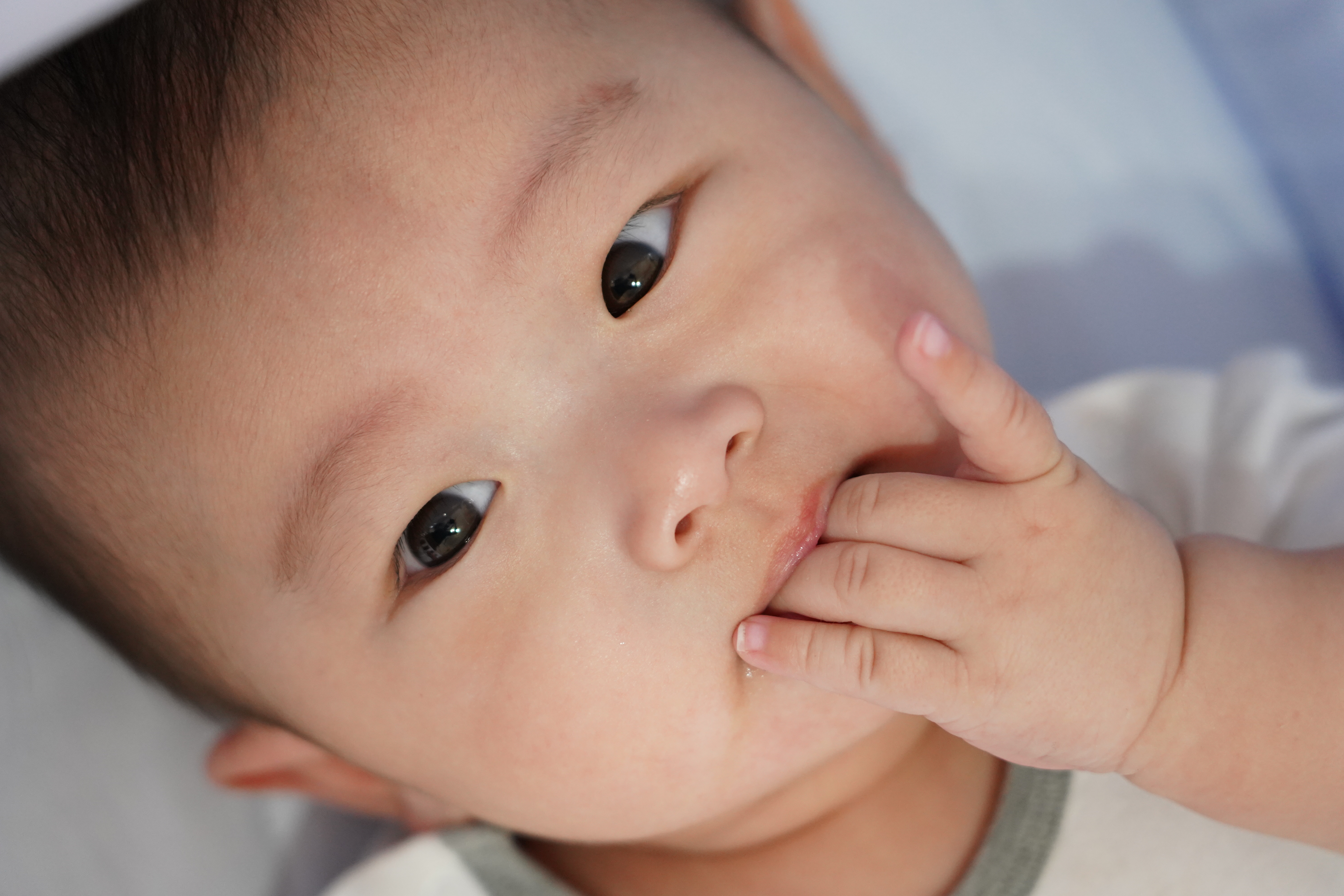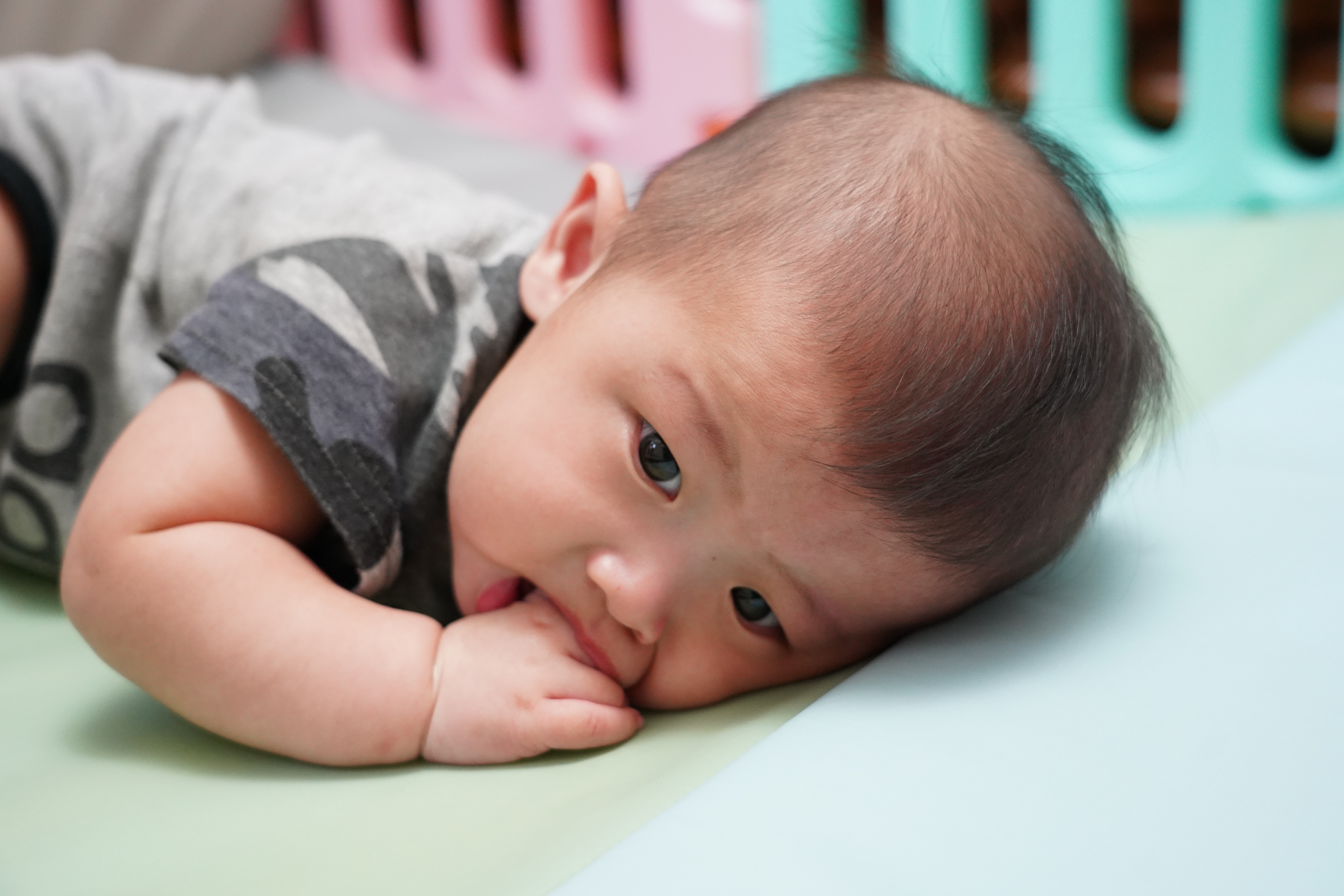 兒子5個多月了,開始牙齦癢癢會想咬東西,睡醒第一件事就是吃他的小床床。