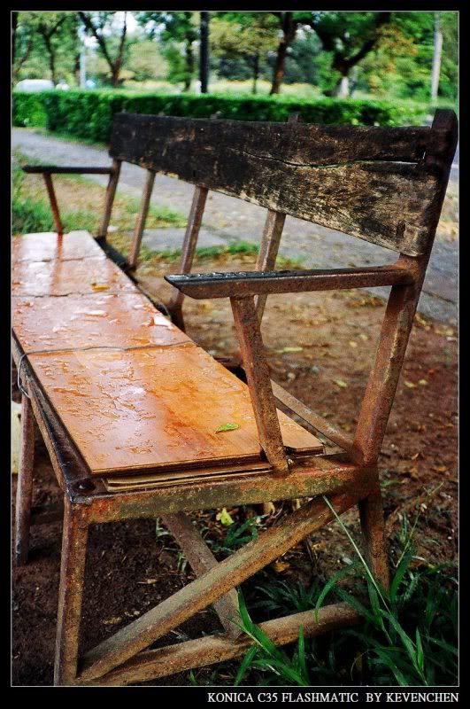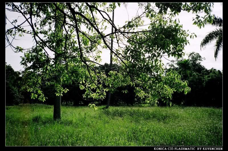 看了照片之後,我覺得是相機的曝光有問題,最有可能的是測光老化,因為相機很多張都是全開光圈在拍,所以相片的四周黑角明顯,再加上曝光不足,黑角就更明顯,可以在大太陽底下,開背蓋,從背蓋向著鏡的方向看去,用一張白紙作底,看看隨著光線變化,光圈會不會自動收放,再來是老機用的電池大多是1.35v的水銀電池,如要改成現在的sr44,LR44等1.5V的電池,相機的感光度要調低來拍,以這台相機,裝400度底片,可以試著用200度來拍,我手上的FLASHMATIC就是這樣用,拍起來還算正常,幾張照片參考一下:我的相機有點漏光,第一接手就拿來拍還沒有去補!