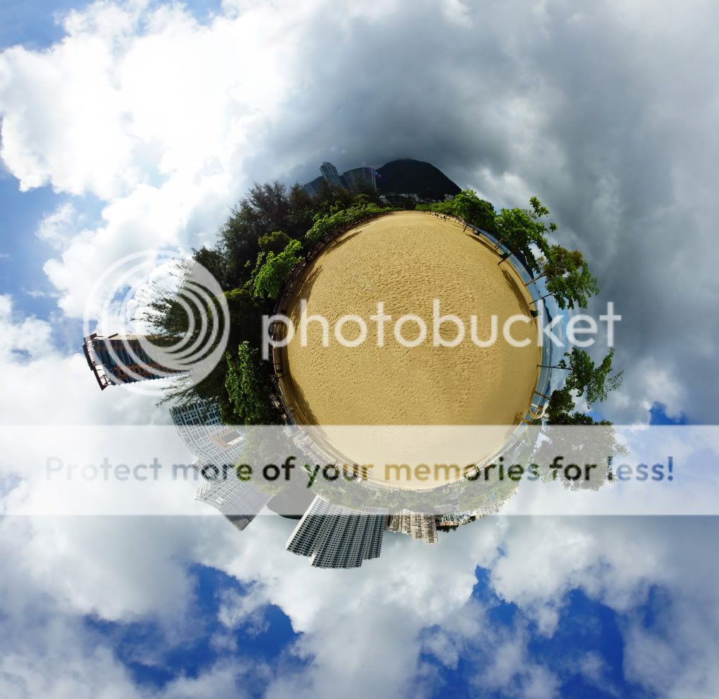 我也很喜歡做小星球,不過我自己是都使用 photoshop 來做,同時現在有許多廠商有出便宜的環景雲台,搭配起來使用會更簡單 :)高架橋大安森林公園如果要簡單使用 photoshop 來做,簡單的步驟是1. 準備一張寬景照(或者是普通的照片裁成長寬比差異大一點,例如 3:1)2. 調整影像大小,將"強制等比例"關掉,把長寬調成一樣3. 影像旋轉 180度(變成倒置)4. 選取濾鏡 --> 扭曲 --> 旋轉效果 --> 矩形到旋轉效果即可完成!!