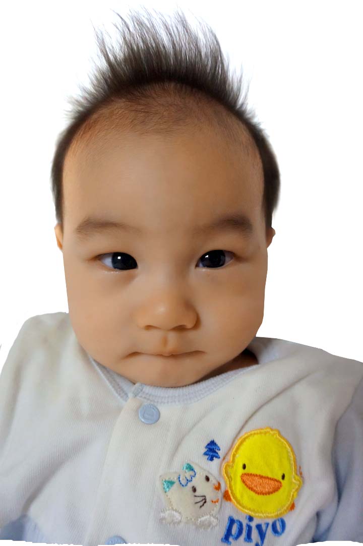 joshuatsai wrote:各位大大:最近在幫小兒做護照的相片後製,因為背景要全白色才可過關,去背去了半天(新手),唯獨頭髮後面的灰色沒辦法去掉,想請各位大大幫忙,讓背景變成全白,謝謝。 我也來試試看。