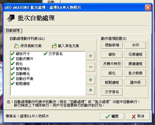 附上該批次處理檔,將此檔複製到 \nEO iMAGING\Preset\ 文件夾內,就可以從自動功能中選取了!