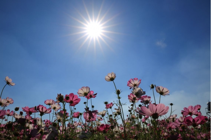 圓形光圈本身就是要讓散景散的綿一點的,因此才被稱人像鏡。。拿來拍夜景時,因為燈光小小一顆,所以就看到細細尖尖的短短芒星。拿來拍太陽,太陽因為太強了,因此整個就會暈開一坨一大片的爆亮。。那怎麼辦,就是減光囉。。。怎麼減。。就是拍兩張,而後一張是入光減到只剩太陽其他的都是黑媽媽的,這時才會出現芒星。再將這棵芒星移植過去原來的爆亮一片的圖,因為入光少的可憐,因此會有色偏喔。。。這就是圓形光圈移植另一張的芒星,你看到太陽周圍的色偏就是因為減光造成的色偏。。物理上的設計就不是拍芒星用的,因此天氣再好都是枉然,懂了唄。。。人家是設計散景綿一些的用途啦。。。反正只是要芒星的話,不用買貴森森人像鏡不就好了唄。。。