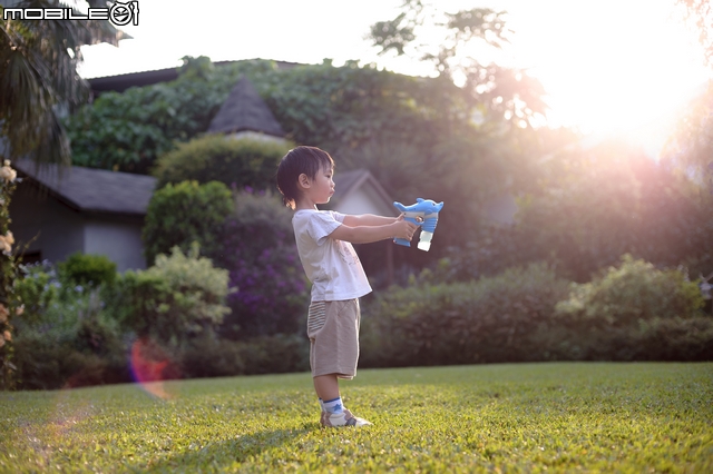 我在小朋友的左右各放了一支閃燈,應該是小朋友的右前方跟後方,右前方為主燈,後方為次燈。主燈的部分有上了大型的柔光照,否則光質是不可能可以這麼柔和的;後方的燈應該是沒有上柔光照,所以小朋友耳朵下方的陰影就顯得比較生硬了。這種瑕疵,通常會在後製的時候盡量P掉,但是居家照又加上很搞剛,所以就一切從簡,(又不是要上封面...)告白的來說,這種配燈的布置其實找到甜蜜點怎麼拍都好看,但是缺點就是出了甜蜜點,整個為道就不對了,所以其實拍久了會覺得尷尬,要等待小朋友那一刻的就位,要等表情,等時機,猜他可能的夏一個動作... 如果想要跟著小朋友"動態"攝影,那設燈的工程是會圈圈差差的,小弟我試過幾次,是可以練但是會發現"是閃燈在玩我已經不是在攝影了",有鑑於此,這種技術還是給神人攝影師發揮好了,我安靜的欣賞就好。這張是在夕陽西下的氛圍下所照的,我特別挑了景,把小朋友擺在夕陽有穿透的隙縫中,就是要營造夕陽灑在臉上身上的fu,但是樹木太密了,遮避掉了太多夕陽光線,效果打了很大一個折。如果要拍這種的,我下次會在比較稀疏一點的樹葉破洞中去找景。在構圖上,主要以三角形對角線的方式來取得是覺得平衡,盡力了... 嗚嗚嗚這張是在一家餐廳的迴廊處拍的,我忘了為什麼要燈這張照片了... 喀吃...這張照片是我最喜歡的一張,靜中有動,動中有靜,很有自感的一張照片。我覺得很多的照片裡,這張是最"輕"的,那種輕是拉掉了想要暴力構圖(藝術構圖?),想要拍到什麼好作品,或是想要得到什麼影像上的什麼表現什麼的,這些在我拍這張照片的時候,是備忘掉的。那真得是個很好的體驗,因為這張照片當初拍的時候是沒有什麼想法的,就只是因為看到了孩子想要舉起槍來按又按不出來的那一刻,那種想要嘗試與想要期待的神情,就在這個剛好的時刻記錄了下來,這種照片淡淡的,卻充滿了力量。題外話,我有看過有攝影師可以用大燈打出這樣的氛圍的照片,那是顆太陽啊,這種太陽的感覺可以用大燈打出來,真的是太厲害了。mimikuX wrote:請問大大所謂的長變...(恕刪)
