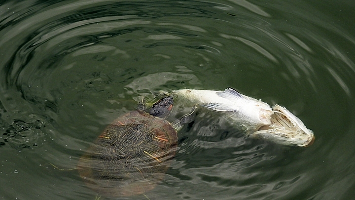也來一張比較不一樣的,烏龜吃魚的照片.