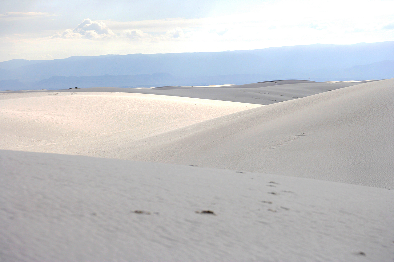 白沙國家保護區大概是讓我最難忘的地方之一了. 可能也是因為我太小看這個真正的沙漠了. 開開心心帶著我心愛的相機和一瓶水就衝了. 還偏偏走了難度最高的 Alkali Flat 這個健行步道. 在一開始的時候還跑來跑去的拍拍照. 等到1/2左右時, 我發現我水已經喝完了. 到了2/3左右, 驚覺四週都是雷雨, 真的是最糟糕的情況. 我從來都沒有那麼開心看到回家的車子停在那邊等著我們. 十分建議水帶多一點, 然後帶頂帽子和太陽眼鏡. 這邊是一個真正的沙漠, 不要覺得和走自家庭院一樣的感覺阿!