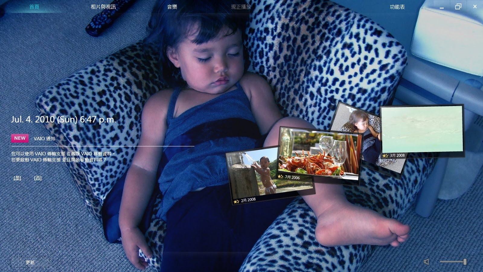 這個我真的不知道但是我買VAIO一段時間了還是不知道Media Gallery 和 Media Plus要怎麼把電腦裡的音樂照片共用上去選擇共用的資料夾就是無法打勾最近重新更新起初easy setup設定按下去一直在設定沒反應導致沒辦法使用我也想藉由樓主的文順道問問有人知道有甚麼可以使用的辦法謝謝(跟網路設定有關嗎?? 由於在外念書 所以設定上都是使用公用網路或工作場所網路選項)