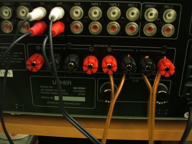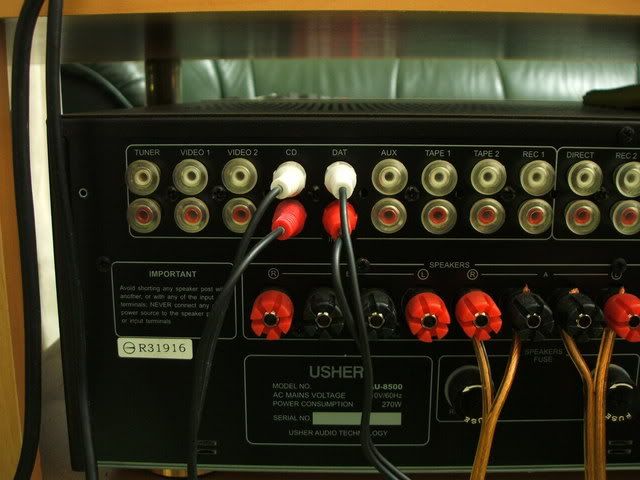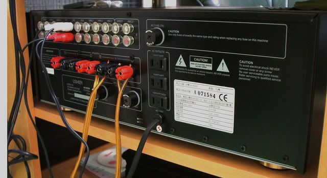 擴大機的後面,這台是 八組輸入,兩組輸出