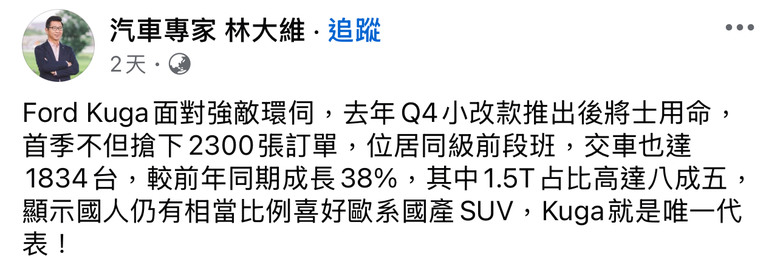 後來我買台 Kuga 2.0 給他開, 不知不覺過了四年..