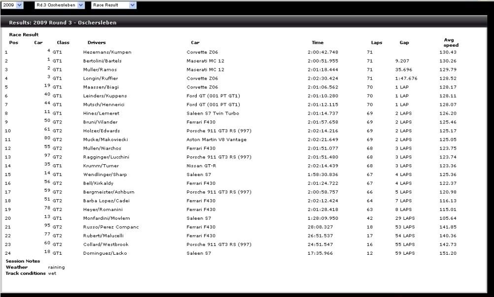 很精采喔 前幾天21號 德國Oschersleben賽道直播 當天日產 GTR也有參賽喔 結果GTR被一堆GT1組車連八過 根本不是對手嘛 可惜我看的太入迷 沒把Ford GT 巴掉GTR的特寫給錄下來 看樣子日產的VK56DE V8 5600CC也沒台灣某汽車媒體報的多麼神嘛 枉費這次參加的還是日本廠隊勒 我可是從頭看到尾的看現場直播 可不是看ESPN的 ESPN漏太多精采境投 到最後還是因為 Saleen 一些車到最後退賽才不至於讓GTR那麼難看 才勉強讓日產GTR得到第14名 想想福特GT 也是根日產GTR同時間加入 FIA GT 房車賽 相較於日產處處找藉口 福特表現的實在太出色了 這場比賽本來是沒下雨的晴天 結過到中期 下大雨 本來想 慘了 可能一堆車會出車禍退賽 剛好讓日產GTR有機可趁 搞不好還可以弄個前幾名 在那裡大張旗鼓廣告