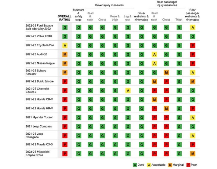 SUV正夯,IIHS更新撞擊測試結果,結果幾乎全軍覆沒,只有兩款車獲得良好成績