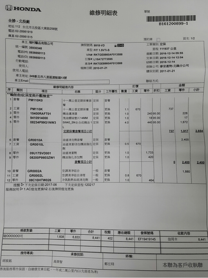 清油路的3500如果扣掉,這費用不是很正常水準嗎?若接待沒找到你事先報價,除了換零件,其他擦擦抹抹要大錢那當然會有爭執~~~小弟每次車進廠就離開,開始維修保養前,接待一定會死命連環call跟小弟確認大約費用......至少新店廠這點很確實~不爽就換一家保養,當然不買Honda車...也行。其實這應該都多半是溝通與認知的問題。