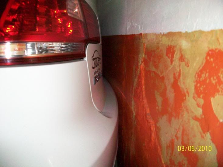 哪個混帳把我的小白給撞到屁屁貼牆,我手煞車有拉,也排入P檔,不曉得會不會傷到
