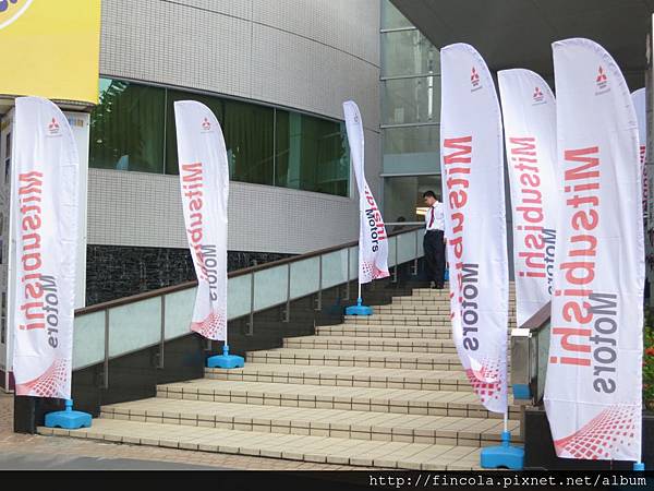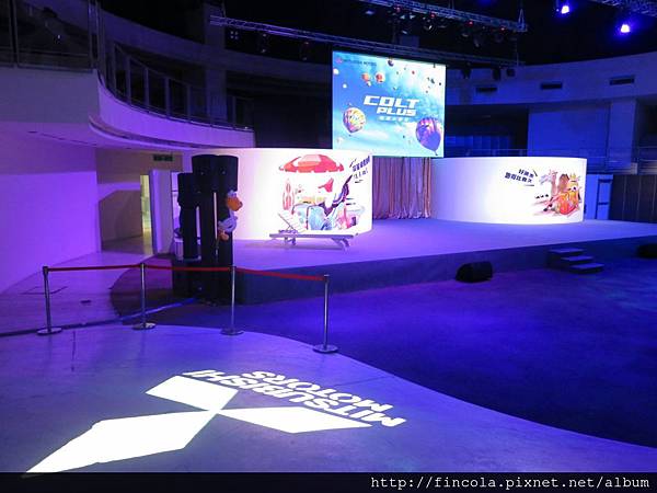 現場佈置得宛若嘉年華會場, 歡樂氣氛滿滿. 地面還有投射MITSUBISHI 字樣.