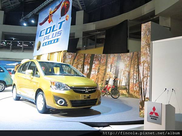 MITSUBISHI New COLT PLUS的新車發表會在新店, 陽光金的車色超耀眼.