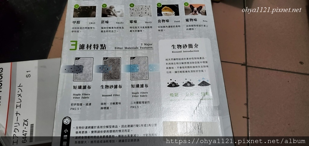 ,滑著手機上網的同時,之前就有看過"無味熊"的濾網廣告,這是一間專門生產跟淨化空氣有關的濾網廠商,我承認是看到敘述好像很屌我就買了,什麼天然生物砂阿、長效分解異味、除味阿等等,其實在我看來跟活性碳產品有差不多的功效