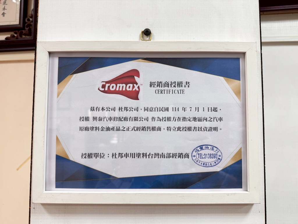 烤漆用得是杜邦原廠漆,有原廠授權認證!這點讓我很放心。