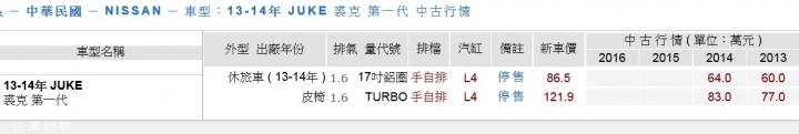 今年年底前有打算購入JUKE二手...但市面上的價格都有些落差..