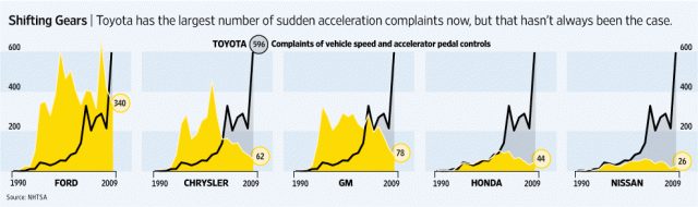 大約2000年以後美國鄉民對TOYOTA的的報怨投訴數量追上Ford,對Ford造成了威脅
