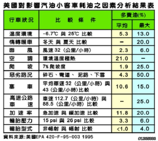我說20%已經算是估的很寬鬆了, 照美國那個表的話, 油耗應該差30%喔