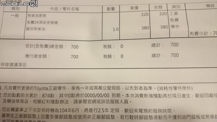 1+1=3 wrote:一年換一次1000元...(恕刪) 這價位是連工帶料嗎?還是油要自備。煞車油其實很省的,上個月換後煞車分磅時,老闆煞咪素幫我換煞車油,四輪都洩下補新的了,一罐900多ML煞車油還用不完,還剩下300多ML。