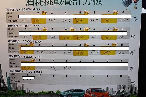 既然知道自己只有跑 28.5KM/L,連30KM/L 拿隨身碟的門檻都不到,那就看看 冠軍分布在哪幾號車呢?