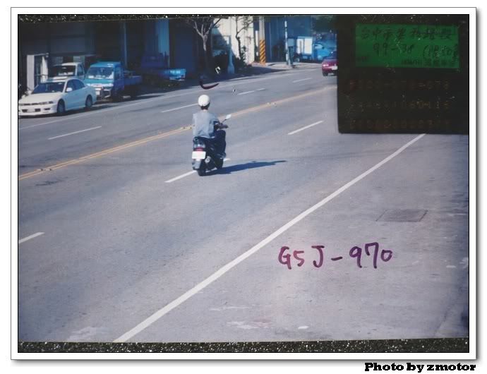 我10多年前騎的豪邁125也是有被照過,不死心又去附近研究一下,果然只是一般的固定照相機,地上也沒有線圈.自此之後,我騎車看到這種的一定會減到表速以下(雖然都是快樂表),但是還是會有很多騎士從旁邊呼嘯而過,有時還被按喇叭呢!