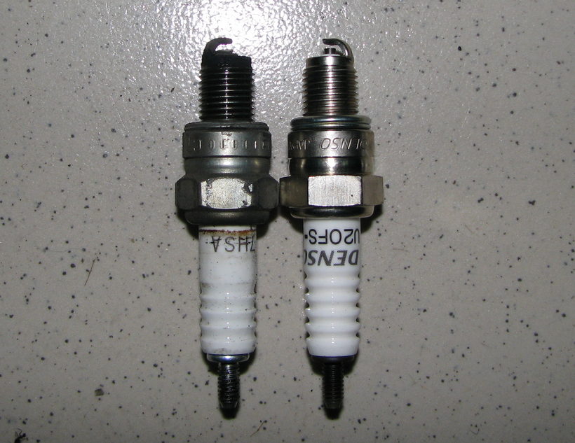 舊(左)/新(右).. 比較檢視~ 真的吔.. 中心(+)電極已耗短如此, 確實要更換囉~~