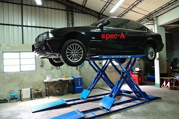 一根油壓柱伸出推底層平台,不台两旁導輪平穩地移出來讓駕駛者拿車。