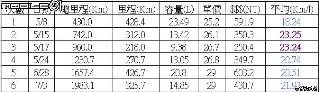 自己的車(FZ6S2),有2次超過20L是因為前一次加油只到跳停沒加滿,計算會有誤差所以等第2次加滿在合算,養缸期間順順騎(4000rpm~6000rpm),近期有騎比較用力(5000rpm上下)油耗有掉了1~2km/L,給您參考參考^^