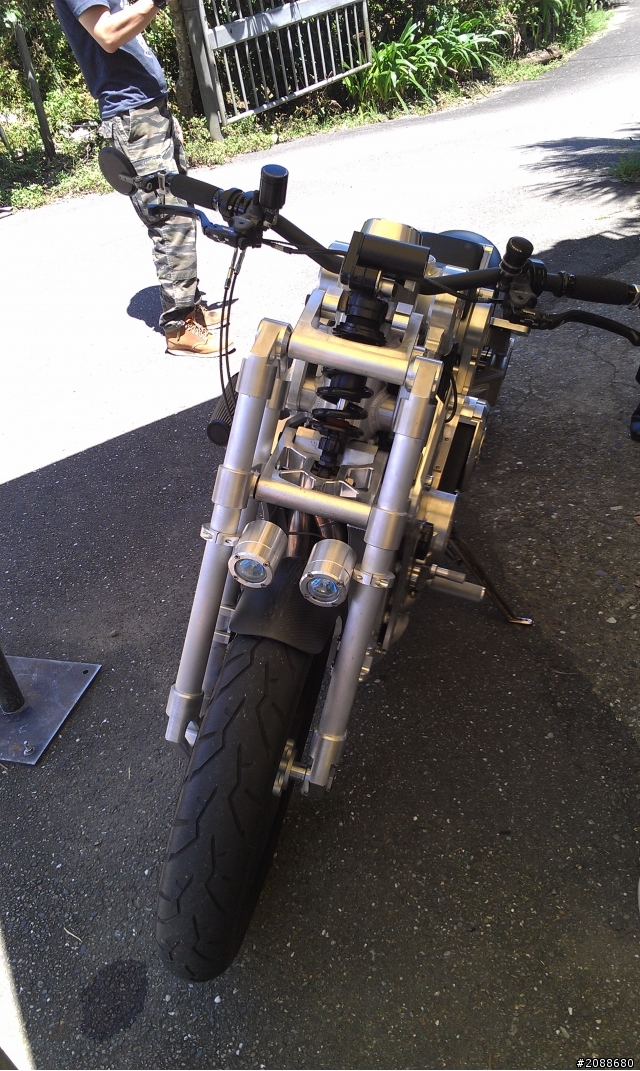 就拿我這輛來說~~剛開始下定時,原車型是分離把手,空氣濾清器是哈雷樣式,排氣管下半部使用全鋁包覆前方向燈在把手兩側~~~等等!!