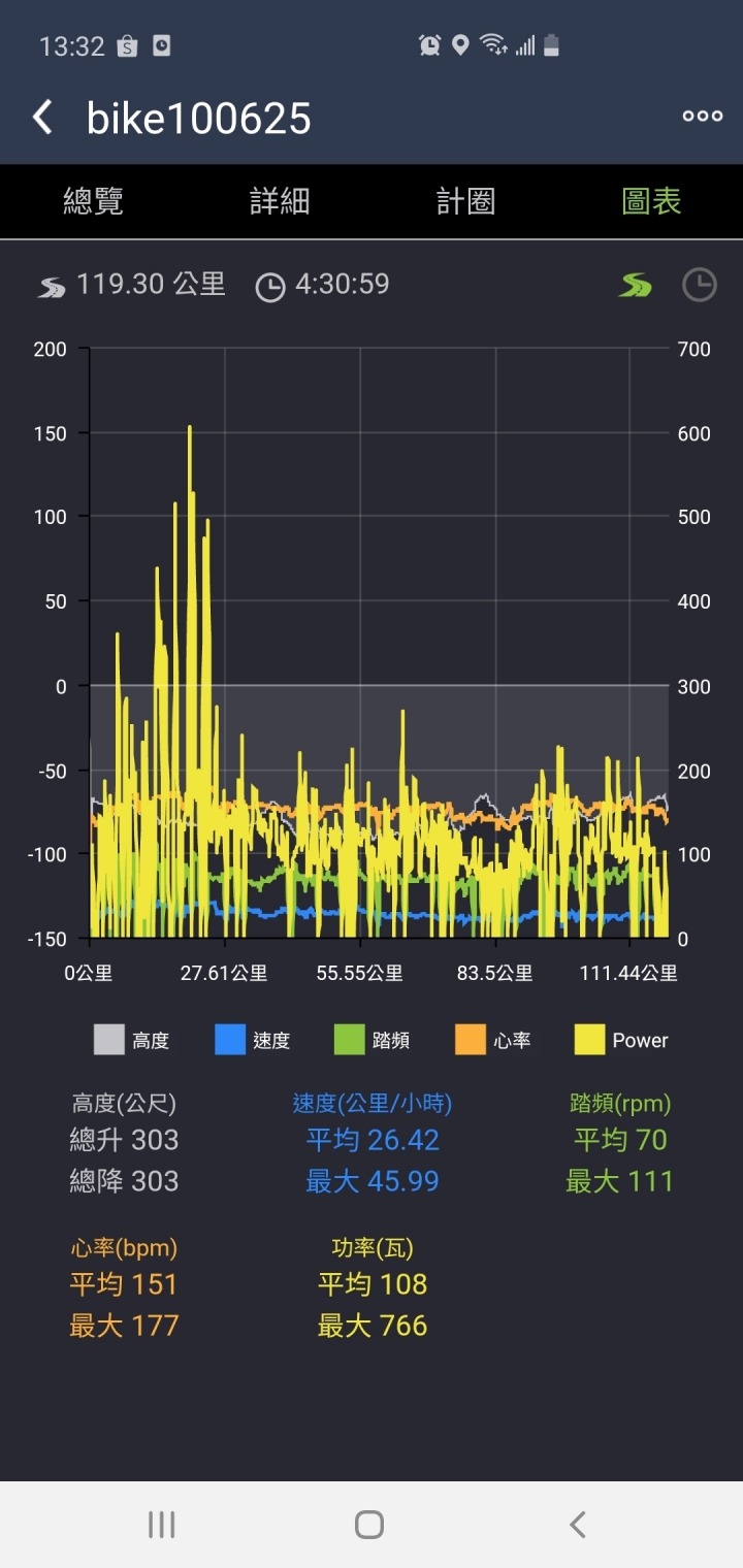 BIGHANCE wrote:我40歲 220-40(恕刪) 那真的超出太多了喔。我年紀稍微再大一點點,屬於經常騎車的車友,速度算是有一點點小快的。個人經驗,心律跑到 90%MHR,也就是最大心律的 90%,就已經接近 RED ZONE。超過 95%MHR 就是在 RED ZONE 了。我自己過去一百趟的騎乘,心律只有極少數、極短的時間,會進入到 95%MHR。只有故意拉間歇訓練,才會到 95%MHR,但是,那也只有短短的幾分鐘。對了,平常我使用心律帶,同時也使用心跳錶,會去對照二邊的數字,我的經驗是二邊 99.99% 一樣,所以,我很相信所看到的數據。--------------------------------------------------更仔細去看你貼的記錄,比較好奇的是,從高雄到台南,應該是逆風吧,反而心律低。回程是順風,反而心律高,還噴這麼高!回程是發生什麼事呢?有人亂開火嗎,從佳里往台南,反而心律衝上去,還衝這麼高。如果騎乘前後(去程、回程)沒太大差別,那麼,BIG大大,真的有需要更了解自己身體了。正常來說,通常回程的心律會比較低,主要是燃料燒完了,所以,沒力啦,心律也跟著掉下來。