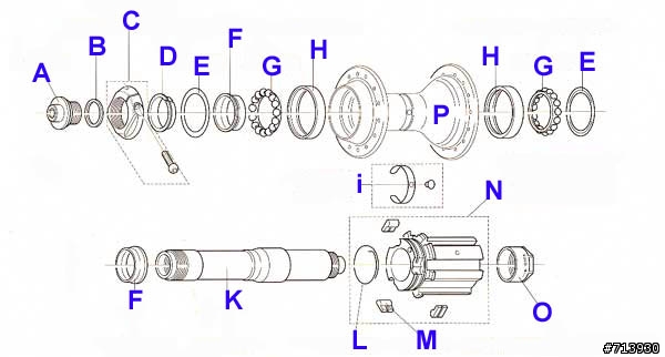 2.檢查花鼓鋼珠和珠巢是否有磨損,照理說如踩踏停下時只有如附圖"P"零件會轉動