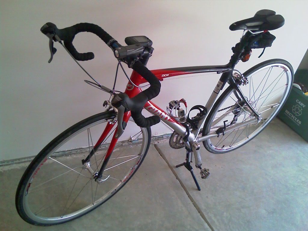 各位大大好~小弟初次PO, 請多多指教!這是小弟的'07 年 OCR A1. 目前里程是~600mi, (一直偷懶,最近才認真騎)愛車的左面特寫唯一的改裝: Topeak Allay 坐墊 (照顧後代...)龍頭上裝 705...真的很好用! 前前後後加起來, 車子還是很輕. 不愧是 Alliance 車架 而且,騎經過加油站的時候特別爽! 真的有油價與我無關的感覺