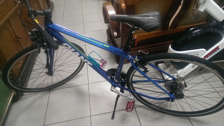 前二天終於把車子牽回來了!本來想牽鐵灰色但是石在太熱門了,所以只好改藍色的,但看到實體車之後感覺藍色還蠻好看的,在橘光的地方看起來很寶藍色只是以後要換前叉真的很難找...看圖這二天騎了40KM 整體感覺還不錯,輪框雖然有自己調過但功力不好沒有調整台所以沒辦法調的精準,大致上變速剎車都比想像中還要優,真的值得推薦的好車!以後還要再改裝敬請期待 哈~