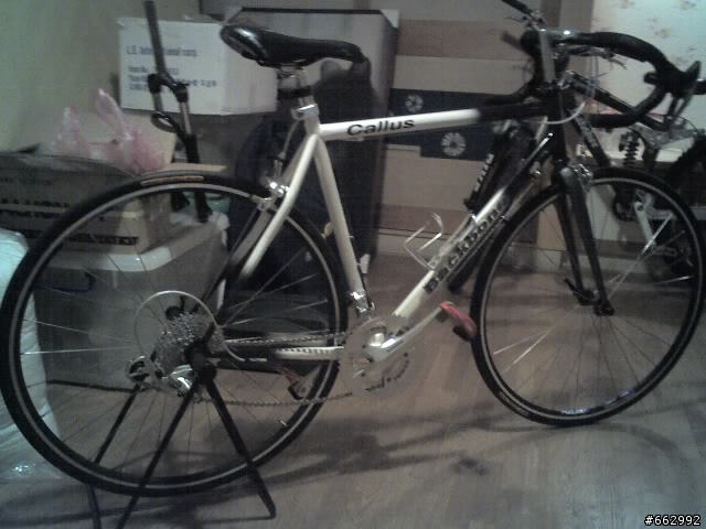 最近手又犯賤....抱著研究的精神組的鋼管公路登山車.............台製的鋼管車架,"BACKBONE"的品牌"CALLUS"型號,哈~哈~不知有誰聽過??配ULTEGRA一體式CT大盤ULTEGRA前變ULTEGRA夾具Dura Ace Bar-End撥桿式變速器105煞把Look踏板XT飛輪11~34TXT正向式長腿後變XT鍊條118目輕量化RITCHEY公路車鋁圈RITCHEY花鼓RITCHEY快拆希望能如獵豹般的迅捷;狡兔般的靈活