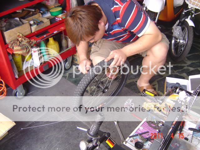 組裝完成後...老闆居然說要幫我調整 轉向系統.. 我想說腳踏車店老闆怎麼會調教"頭印"