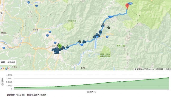 頂一下用心的好東西。試用了一下,整體感覺很不錯。說明中有提到「有誤差」,但有的路線顯示的爬升量和坡度%真是「快樂」,不過有的爬升量又少了,甚至不顯示。(會是明明實際跑就是一路上坡,但是數據就是有顯示下坡的問題嗎?)例如:埔里-武嶺路線,起點474M,終點3268,爬升量3264M?﹍http://riderstation.net/?start=23.97405792875064,120.97934246063232&end=24.13727645549657,121.27438545227051東勢大雪山路線,起點375M,終點2026M,爬升2596M?,有爬過得人都曉得,大雪山是一路陡上,這多出來的幾百公尺真讓人成就感爆表。http://riderstation.net/?start=24.247551495682583,120.83209991455078&end=24.2444993709257,120.97520112991333更誇張的,如果從橫嶺山步道1844M高到收費站2026M高,爬升量竟然顯示815M??http://riderstation.net/?start=24.23667307544724,120.9499454498291&end=24.244264589065274,120.97526550292969