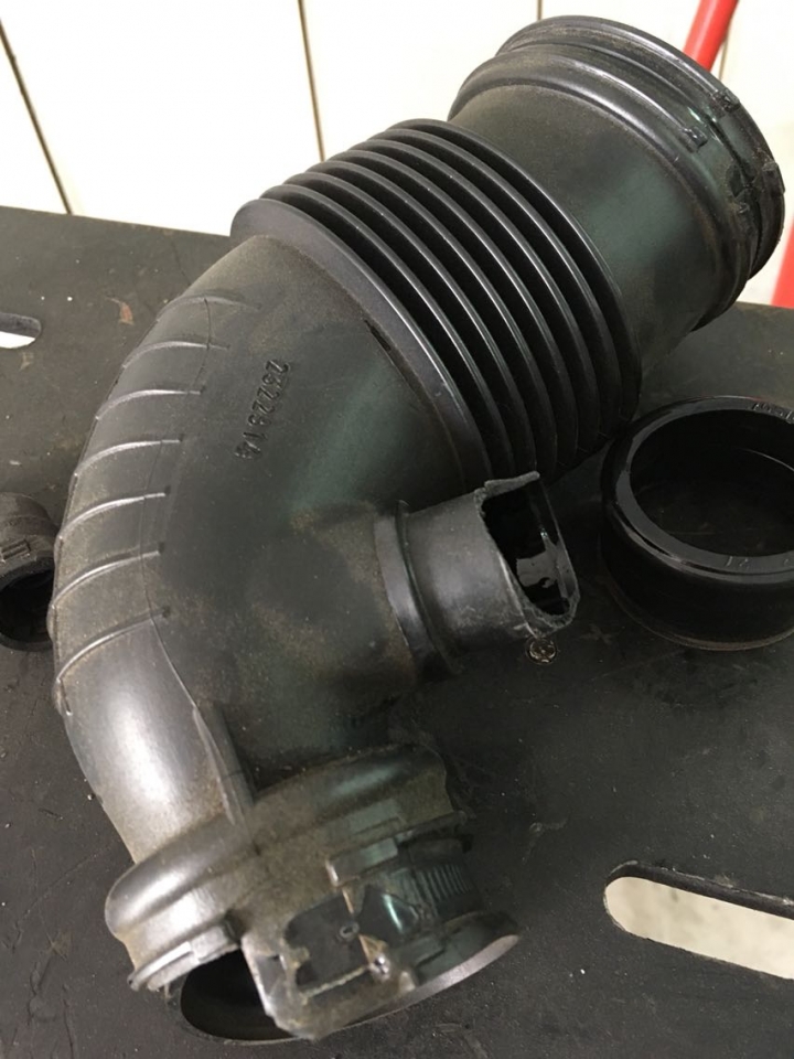 看到車友一堆爆管,自己也覺得心驚驚⋯今天趁沒爆管去廠家換了矽膠進氣管,師父手一拔⋯⋯真慶幸我去換了,否則哪天就換我顧馬路了⋯原廠材質真爛,接頭處基本已經脆化,可能只要一個震動就爆管了⋯換管後馬上上高速公路跑了一下,感覺順~~,還真有點省油效果⋯可能也是心裡作用吧?不過我寧願相信有啦!另外師父調整了一下渦輪裡面一個拉桿,我不太了解,不過之前的症頭--加油頓頓的,已經解決了!感謝這師父!