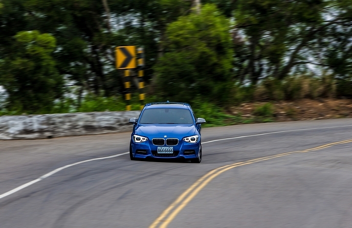 靜靜的看起來是一回事,但當車一發動、實際跑起來,你就會發現這車完全和你想像的完全不一樣。雖然定位只是Bimmer旗下最入門的1-Series,但她可是被塞進了一顆直列6缸 3.0L的渦輪引擎,輸出動力達到320hp與45.8 kg-m的扭力。單是車輛發動瞬間發出的高頻怒吼聲就可以讓你渾身起雞皮疙瘩,更何況這還是輛車重在1400kg左右的五門掀背小車?