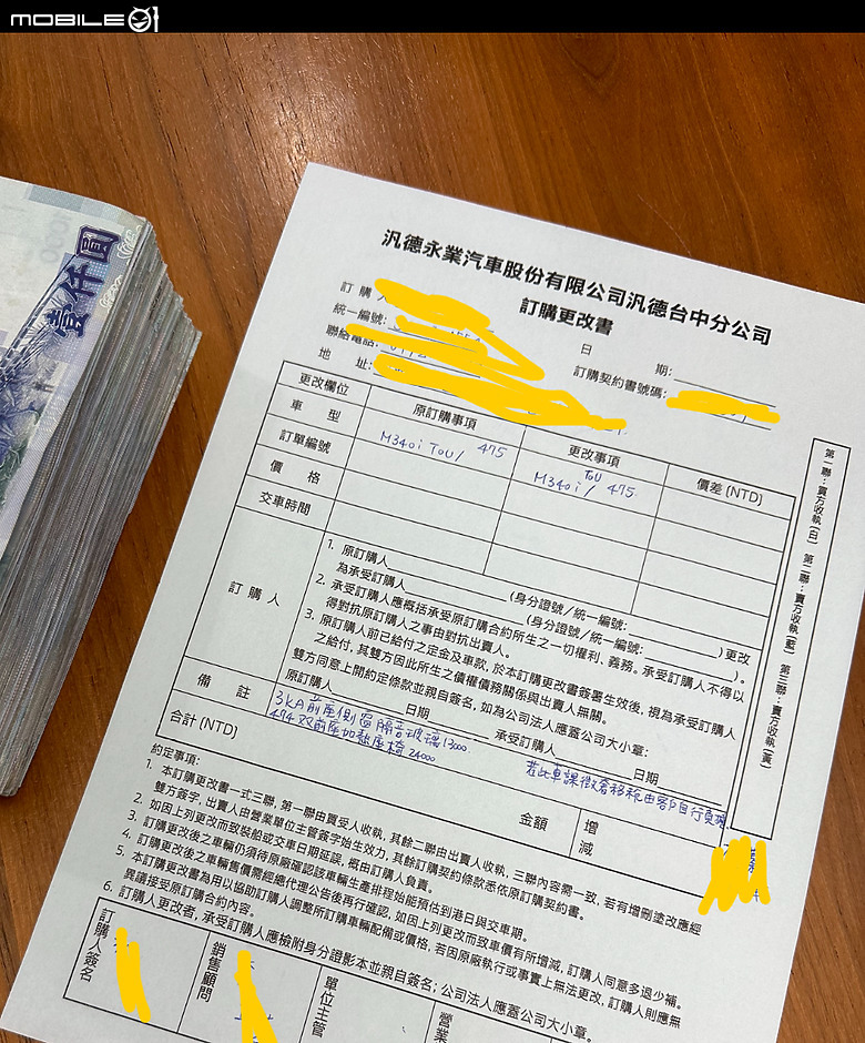 業務領牌前領牌後 , 真的差很多 , 還可以被業務跟廠商數落一頓,當初訂車的時候,我就說不要服務,也不要求,為了簽這份訂單真的是什麼都說得出來~~還要我再相信一次 , 除了合約書有做到以外(我還虧M Performance套件一組)