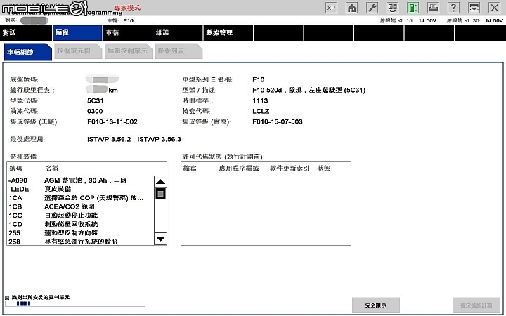 法蘭克熱狗 wrote:真的有3.56.3...(恕刪) 不論用E-SYS或是ISTA-P編程升級都有一定風險存在。自己升級就是後果自己承擔,只要做好心理準備就按下去升級吧!照你貼圖的照片來說,就是更新:儀表、COMBOX、引擎、主機、空調應該更新時間是大約1小時上下吧小螢幕主機資料少,若是CIC或NBT主機時間就需比較長囉若更新成功再跟分享一下囉
