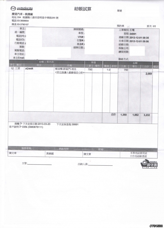 johand wrote:yeachono大大...(恕刪) 新車前3次保養工資免費,自備機油有的會收200有的不會。3次過後工資會依里程數需要做的保養不同而有不同的收費一般保養單純換機油最低工資就是600。外面汽車百貨換機油工資200比較便宜,但沒有臭氧殺菌跟洗車。