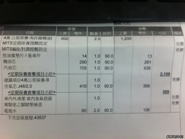 雖然價格貴了點,至少保養項目明確,有保養的東西都會List出來...