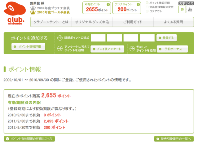 一片遊戲才60至70點分(含早期bonus)...2600的話...真的買了很多遊戲啊~分數有效3年... 3年內買四十多片遊戲也不是不可能啦...不過想確定你沒有將wii point及會員點數混淆吧?如果你2600分是沒搞錯, 真的是會員點數, 那回到會員網頁, 點選你要的贈品, 那贈品就會寄送到你的登記地址了~